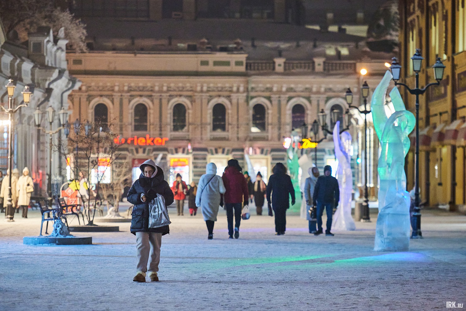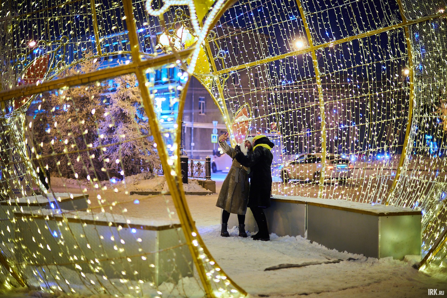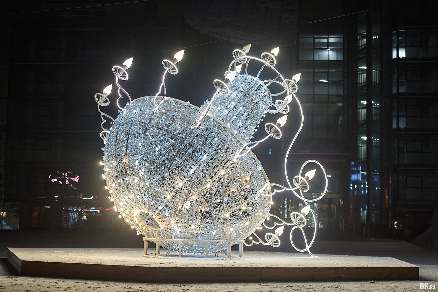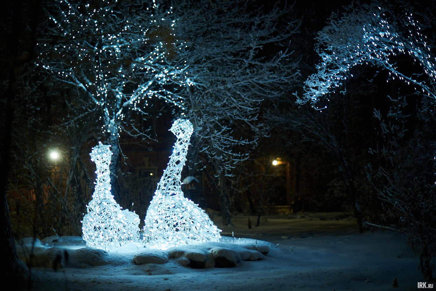 До Нового года осталось две недели, и в Иркутске уже можно увидеть праздничные украшения: ёлки, гирлянды. В этом году в городе будет много ледовых скульптур. Как раз сейчас мастера трудятся над ними днём и ночью.