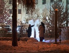 До Нового года осталось две недели, и в Иркутске уже можно увидеть праздничные украшения: ёлки, гирлянды. В этом году в городе будет много ледовых скульптур. Как раз сейчас мастера трудятся над ними днём и ночью.