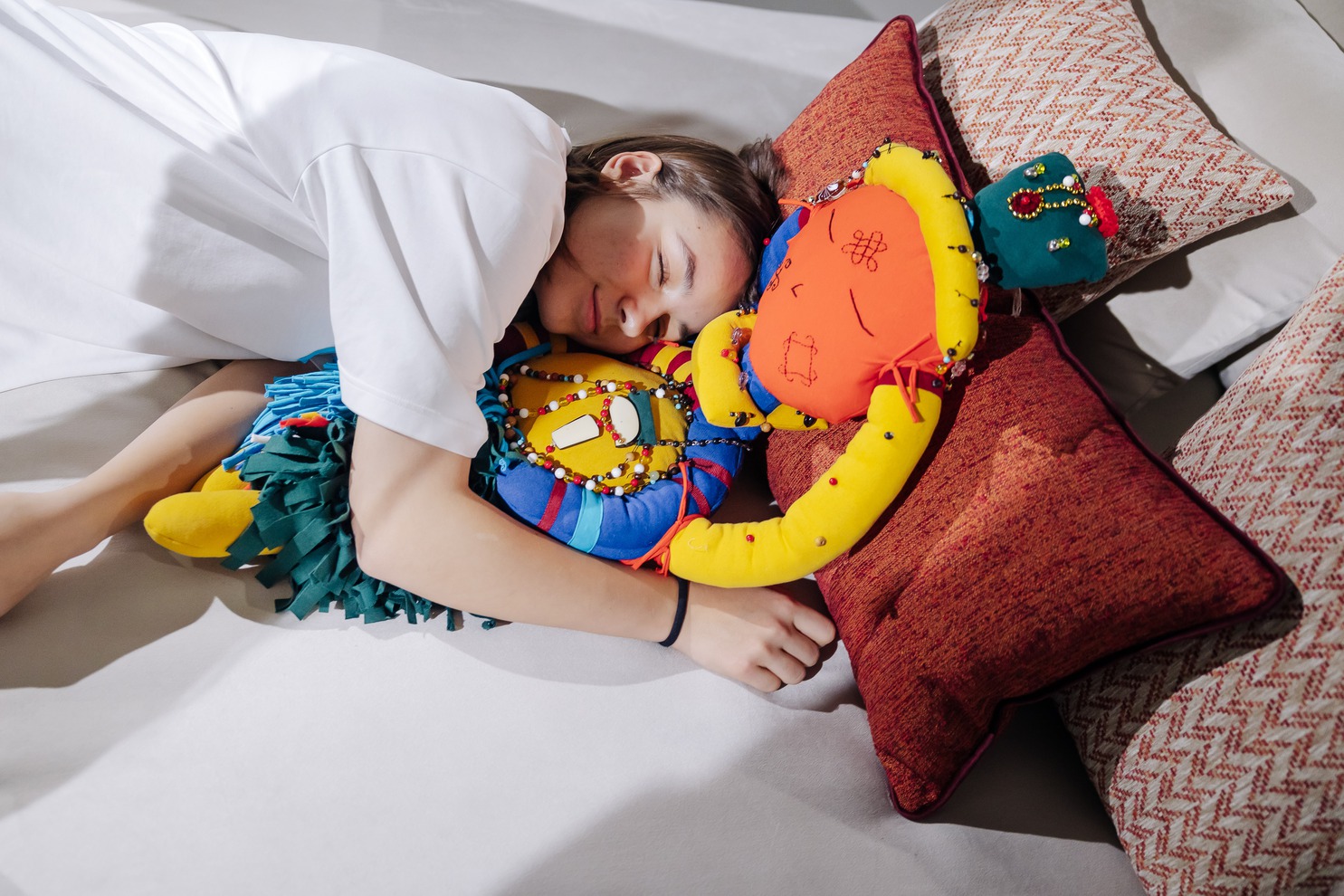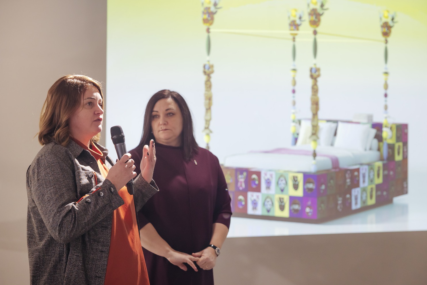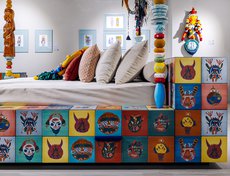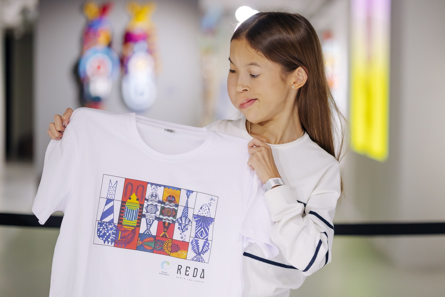 Ученики инклюзивного образовательного комплекса «Точка будущего» придумали авторские принты с героями бурятских легенд и сказаний, с пейзажами Байкала и его обитателями. А команда бренда Reda создала кровать, стеллаж, комоды и тумбочки, облицованные керамической плиткой с рисунками ребят.