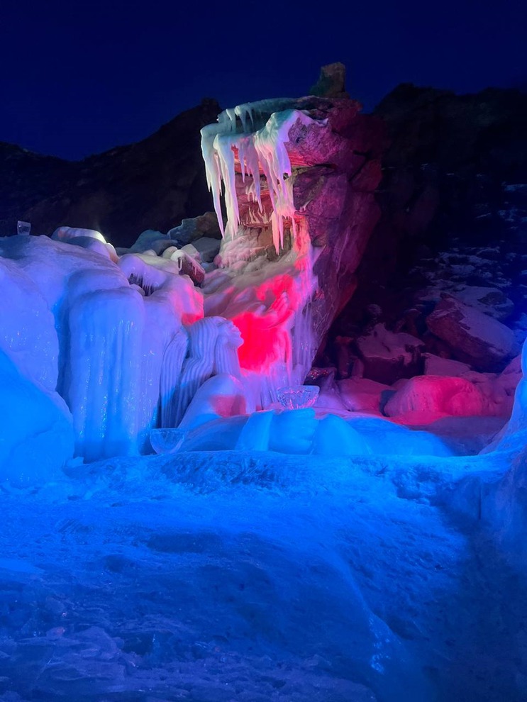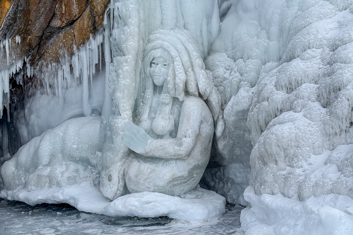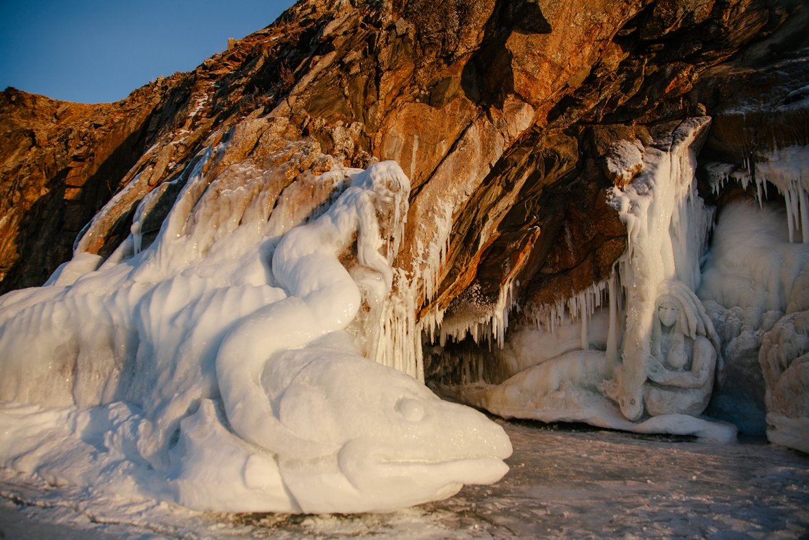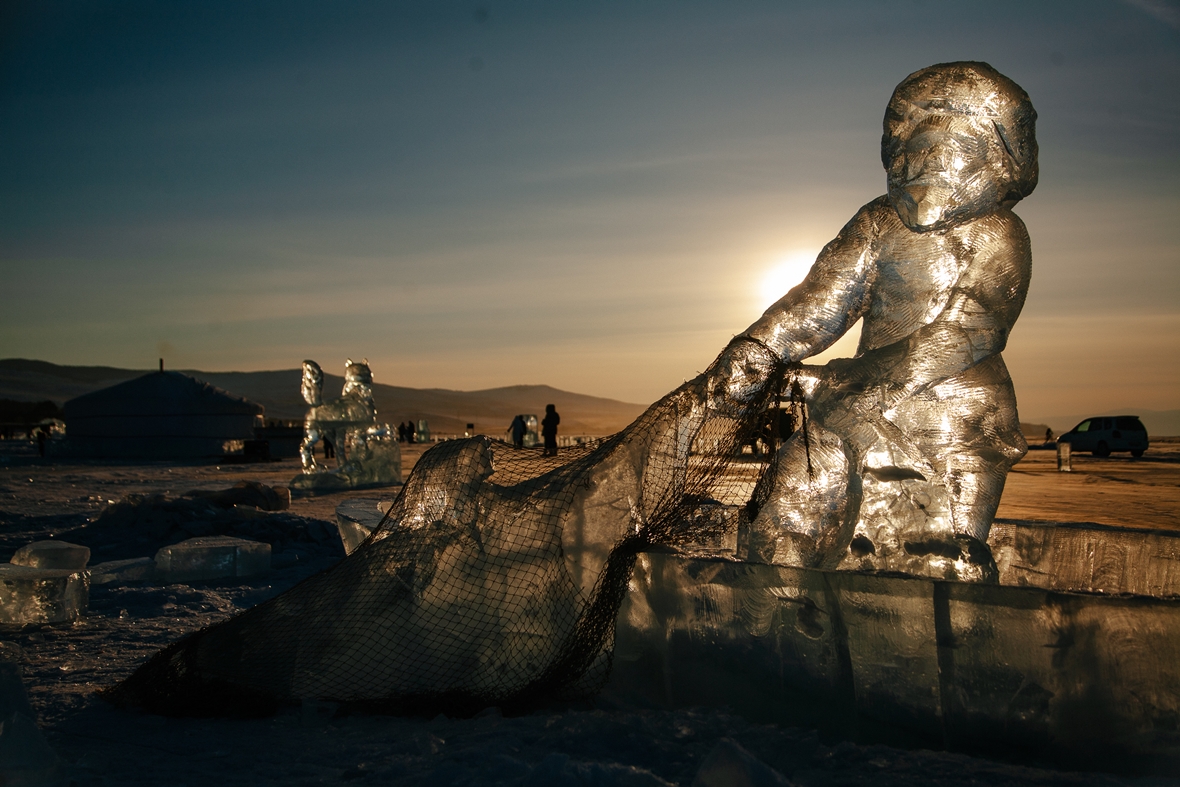 Фестиваль Olkhon Ice Fest проводится на Байкале уже в пятый раз. В этом году над скульптурами работали 13 мастеров из России и Монголии. Они «проявили» сказочных существ — драконов и русалок, чудо-рыб и шаманов, ольхонских орлов и героев бурятских преданий.