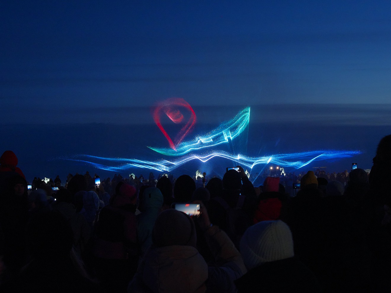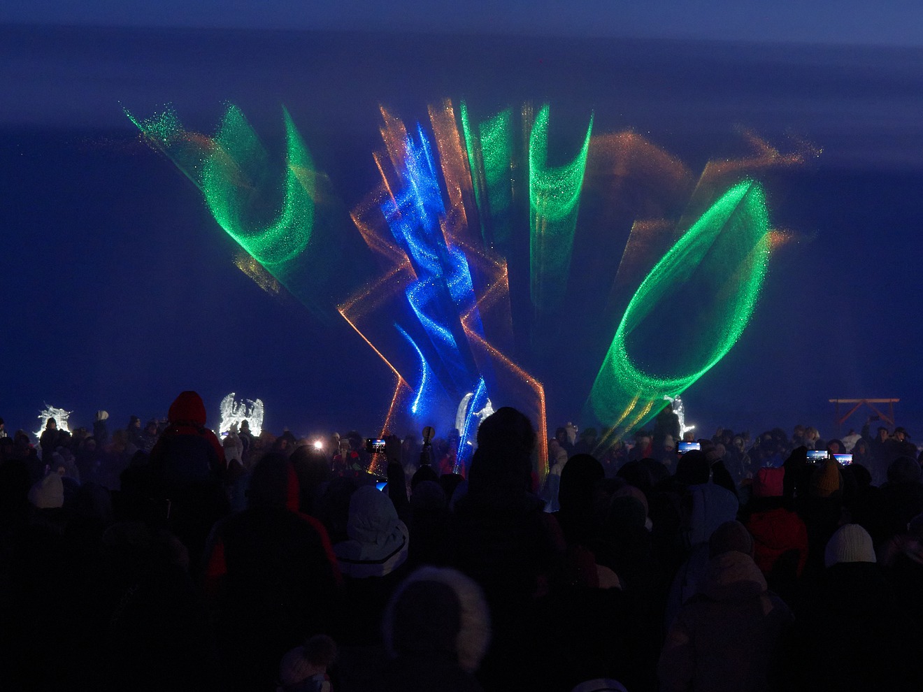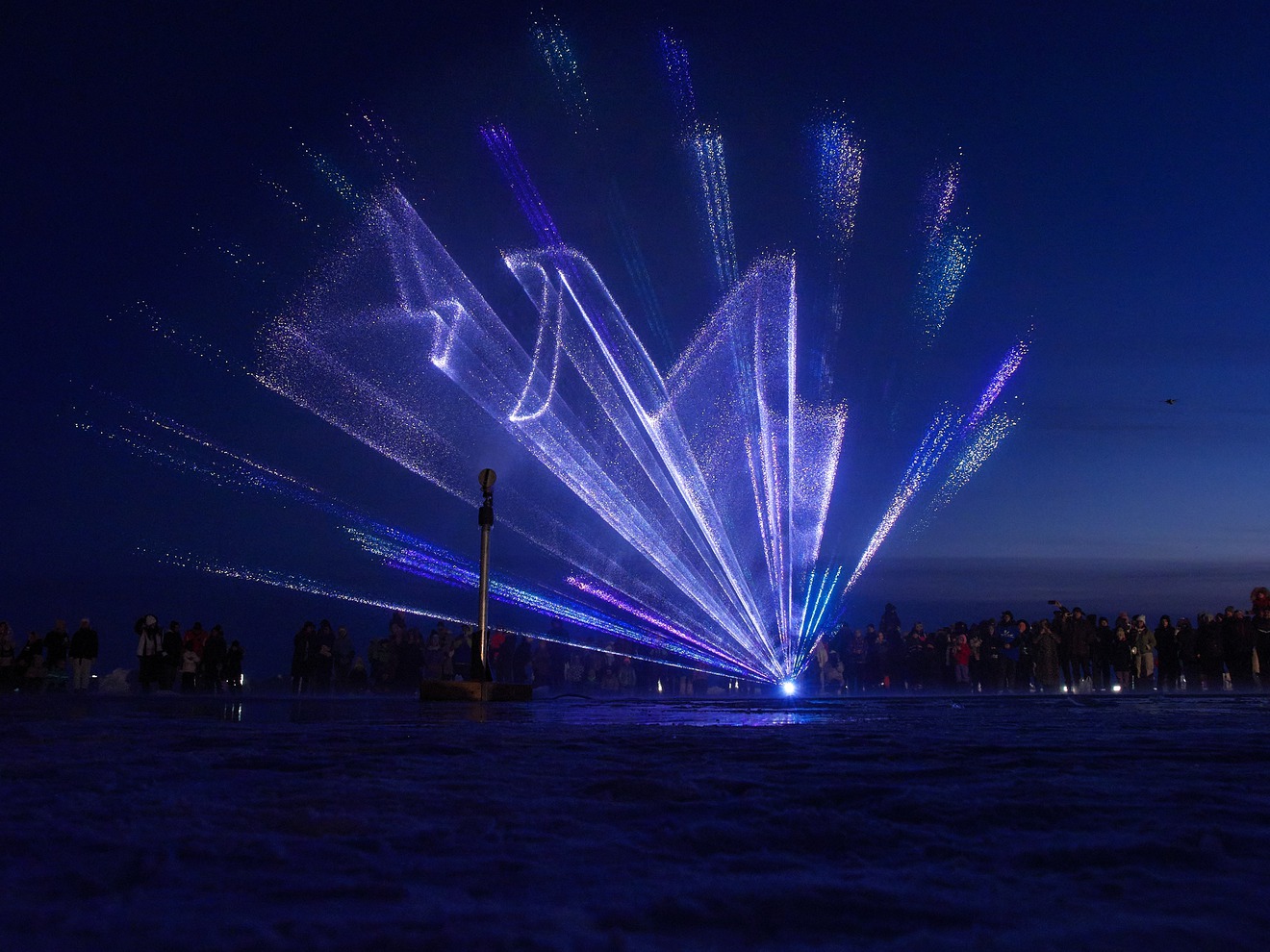 На закрытии фестиваля впервые на Байкале было показано аква-лазерное шоу — проекция на фонтане, который бил прямо изо льда.
