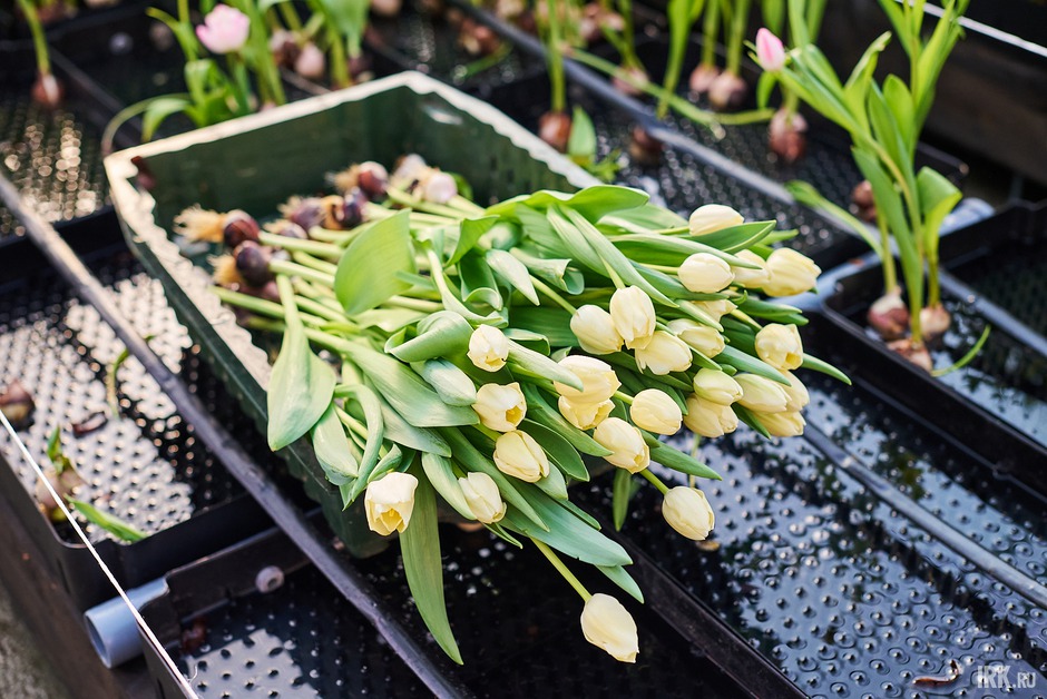 Сейчас срезано уже более 700 тысяч тюльпанов. Большую часть из них отправят на продажу в крупную сеть супермаркетов, остальные будут реализованы самим предприятием.