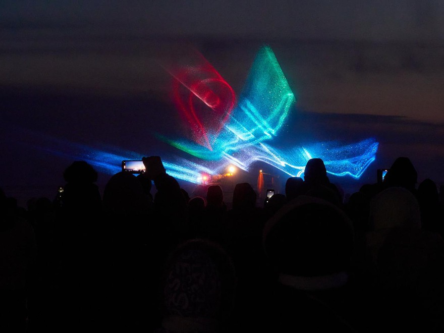 — Аква-лазерное шоу, которое проецировалось на фонтане рассеянной воды, бьющей прямо из-подо льда замерзшего озера Байкал;