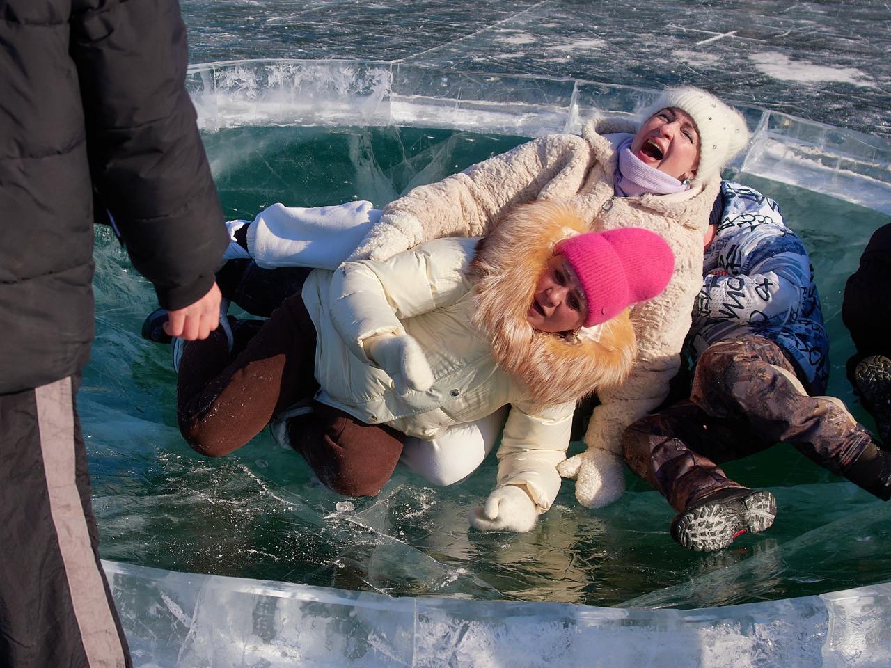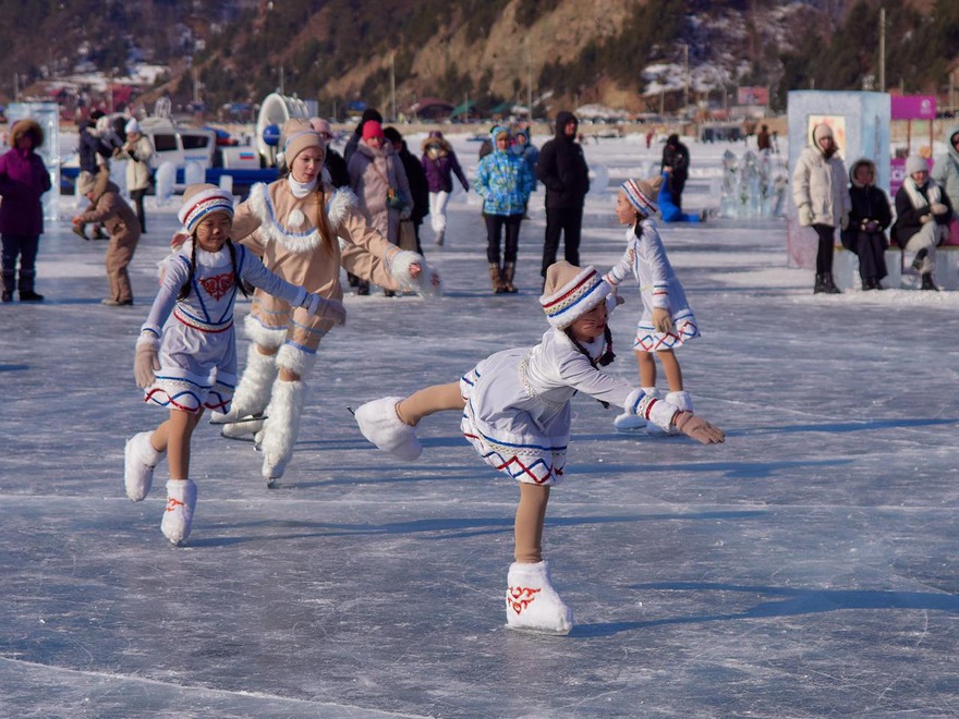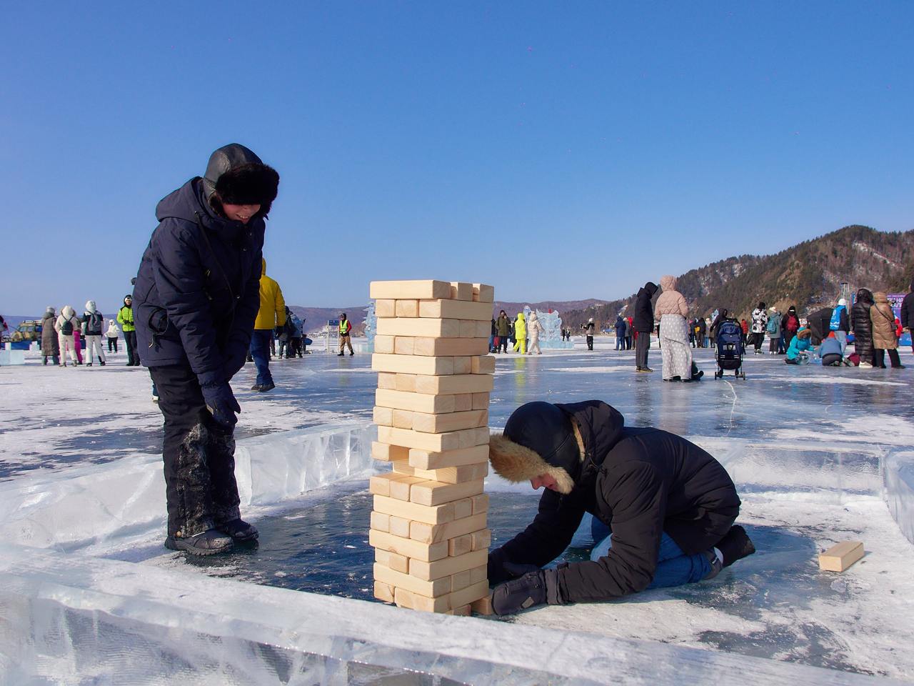Пожалуй, на самом большом катке в мире (замерзшей акватории озера Байкал) был создан городок с ледовыми аттракционами, горками, лабиринтами, тоннелями и чашами во льду.