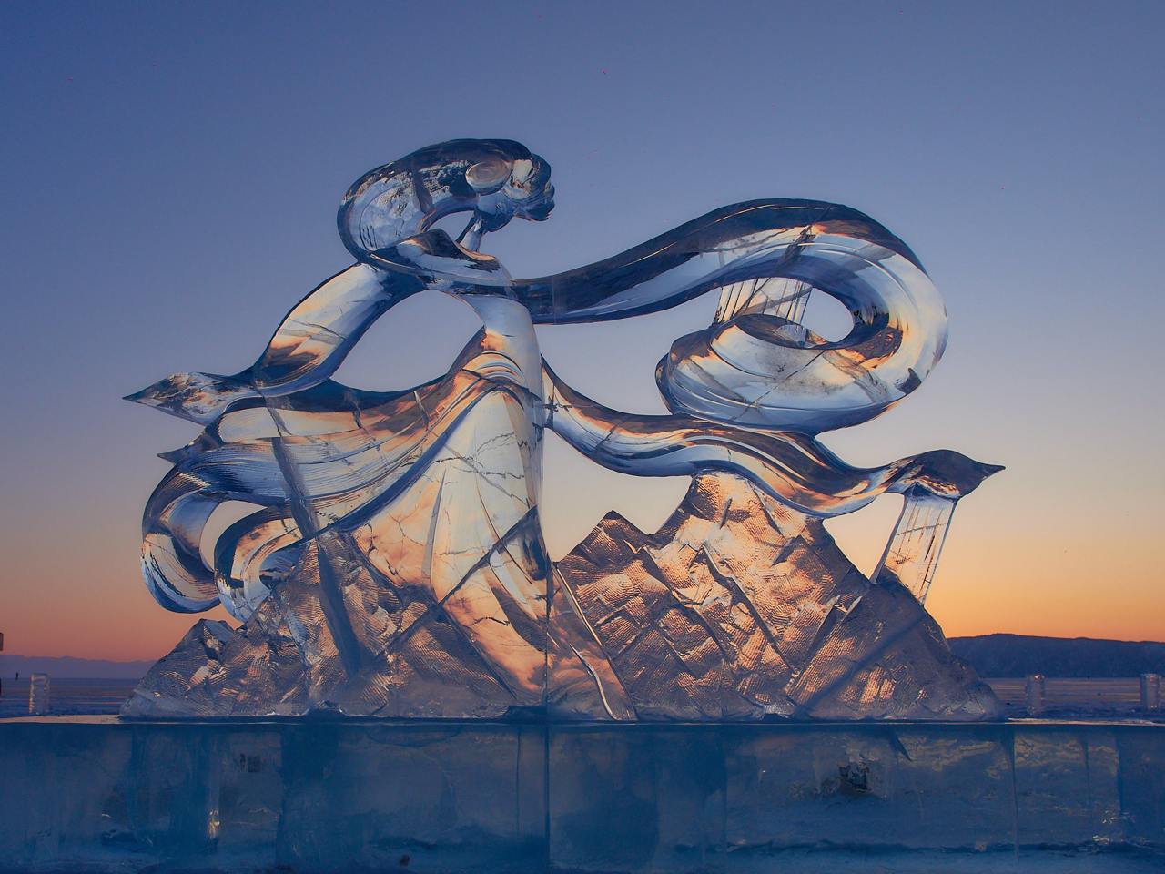 Главными жемчужинами фестиваля стали авторские скульптуры из байкальского льда, которые возвели профессиональные скульпторы из пяти регионов России (Иркутская область, Хабаровский край, Удмуртия, Московская область, Забайкальский край).