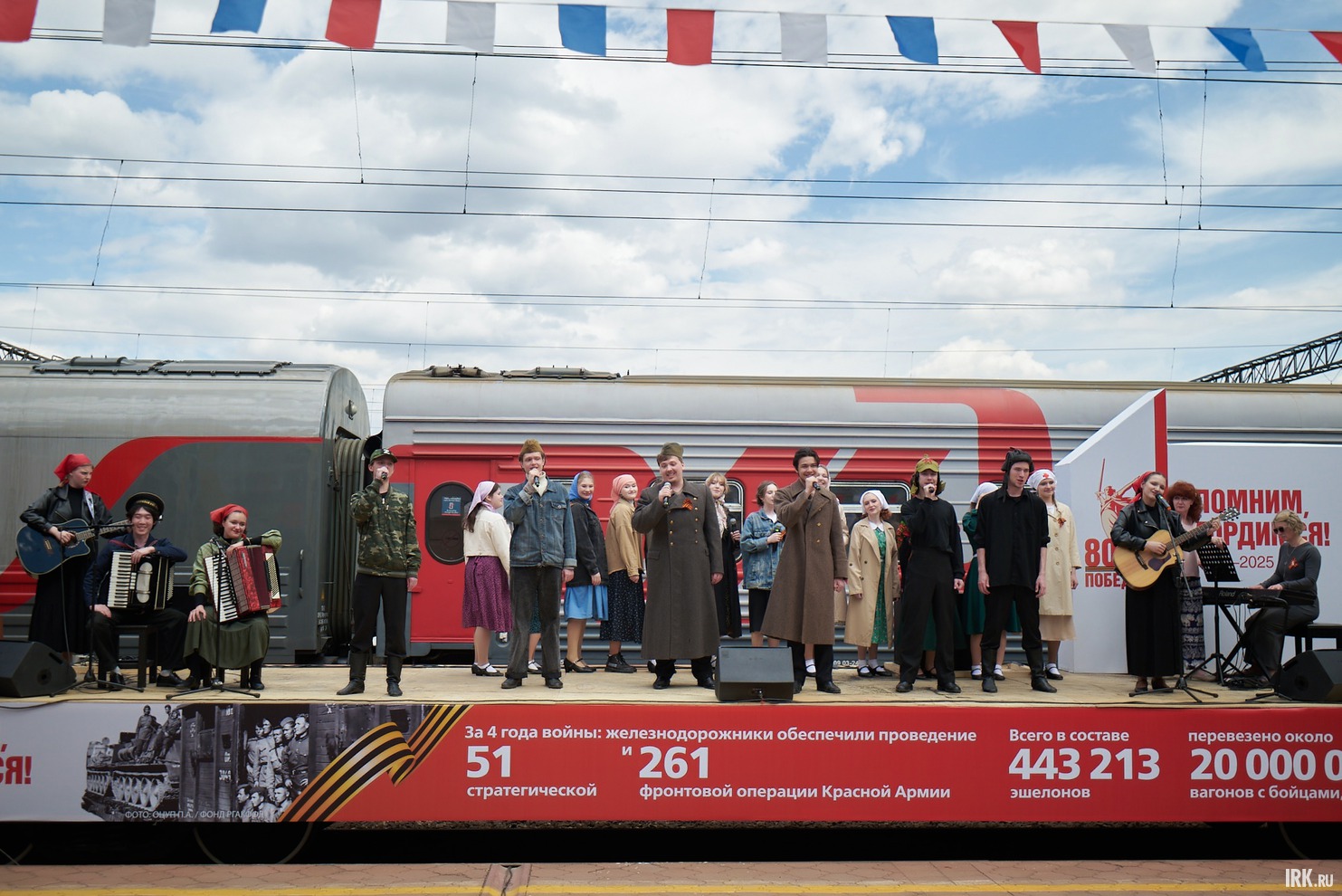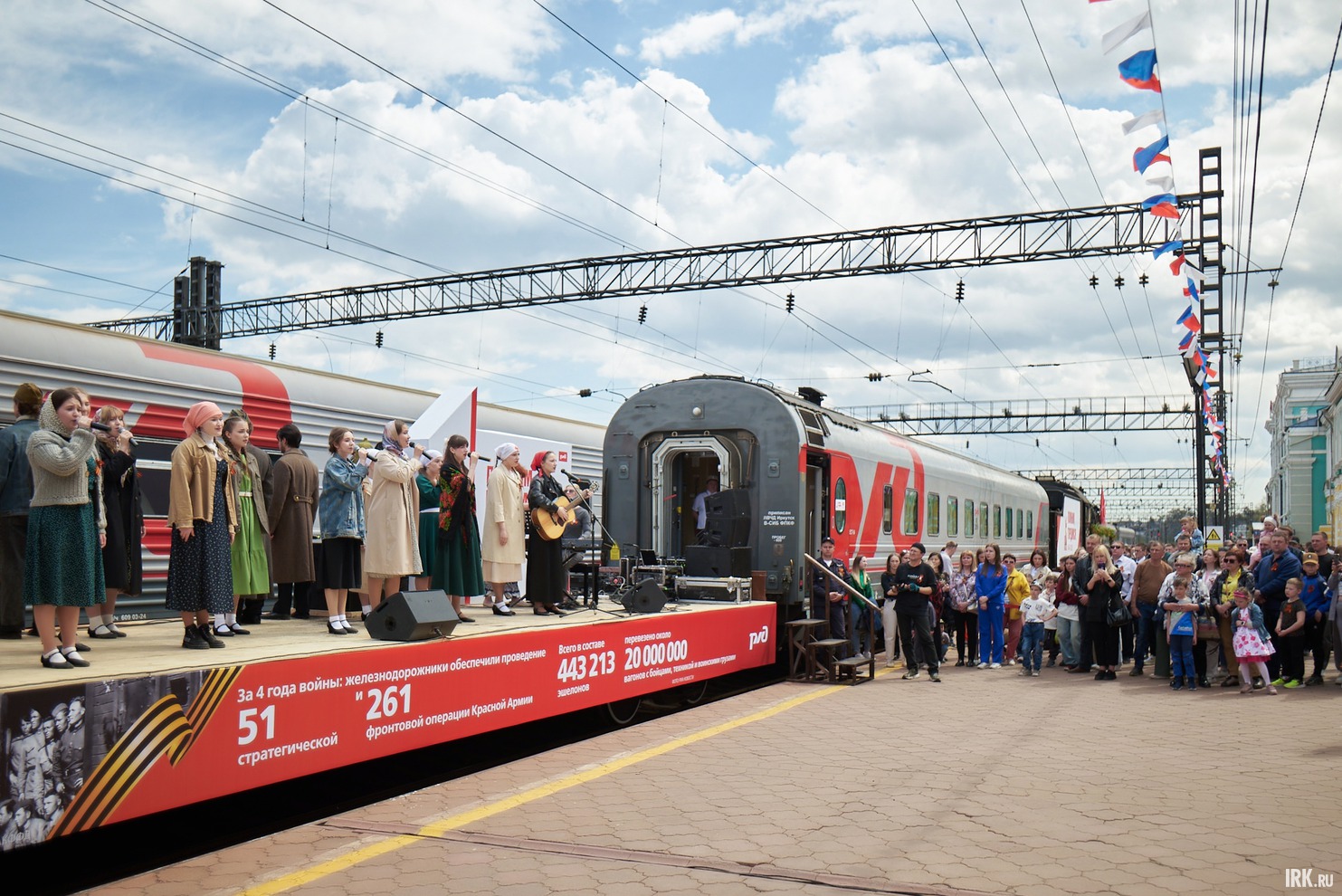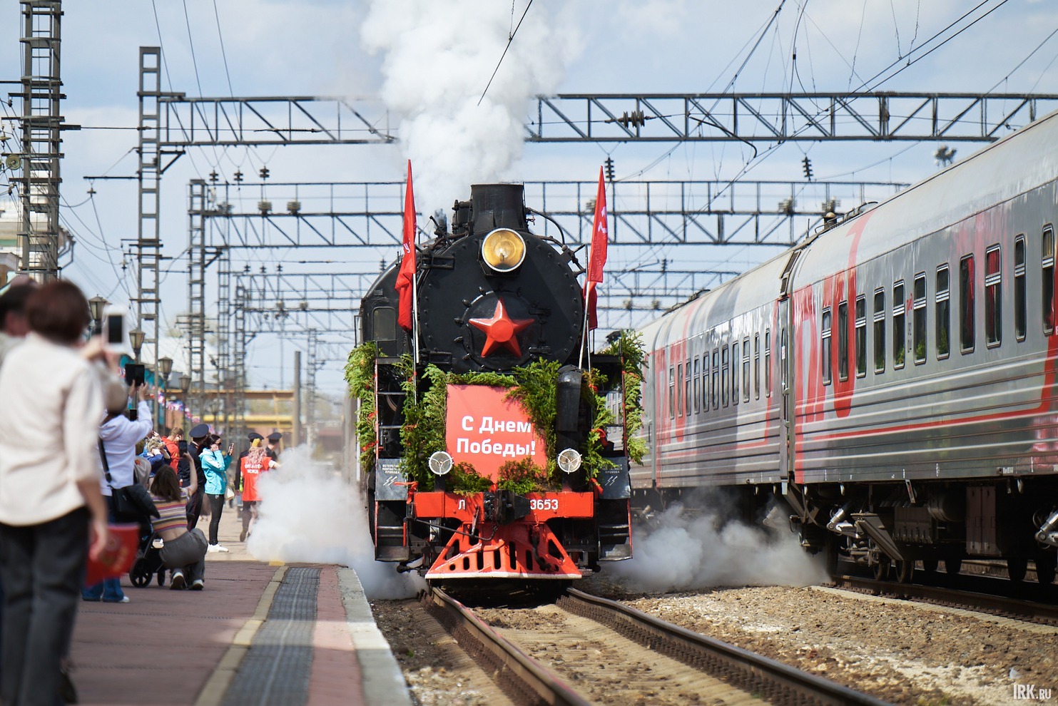8 мая 2025 утром в Иркутске торжественно встретили «Поезд Победы». Ретро-состав на паровозной тяге останавливался на станциях Иркутск-Сортировочный и Иркутск-Пассажирский.