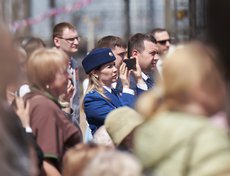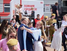 На вокзале участники присоединились к флешмобу «Вальс Победы», закружившись в праздничном танце под композицию «Синий платочек».