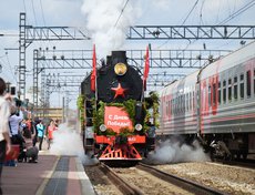 8 мая 2025 утром в Иркутске торжественно встретили «Поезд Победы». Ретро-состав на паровозной тяге останавливался на станциях Иркутск-Сортировочный и Иркутск-Пассажирский.