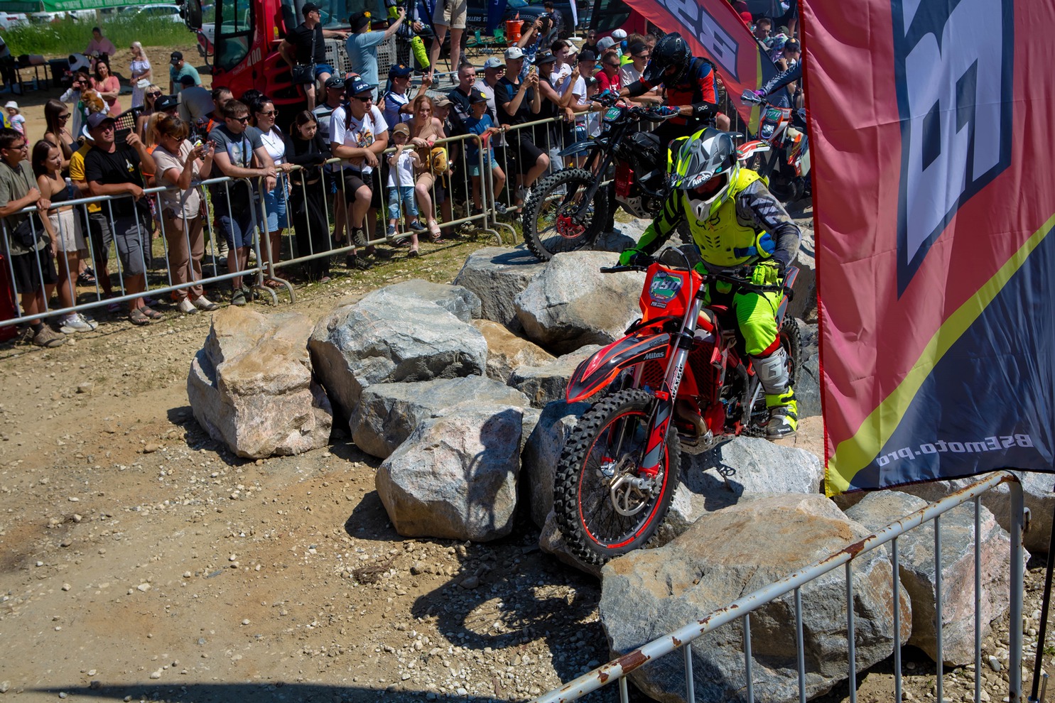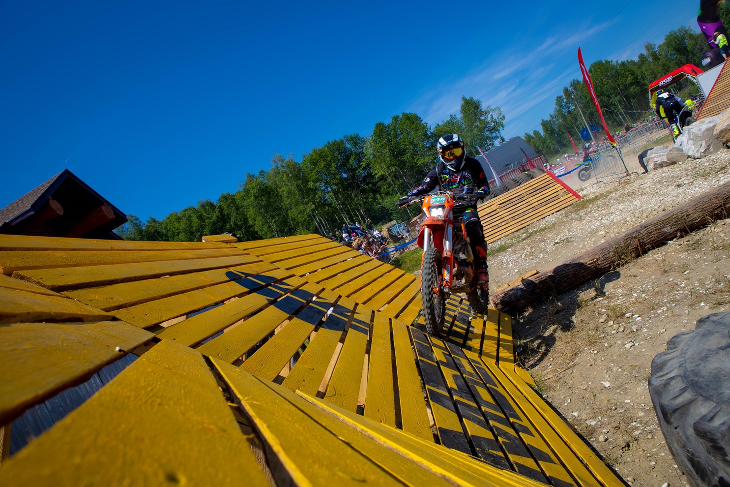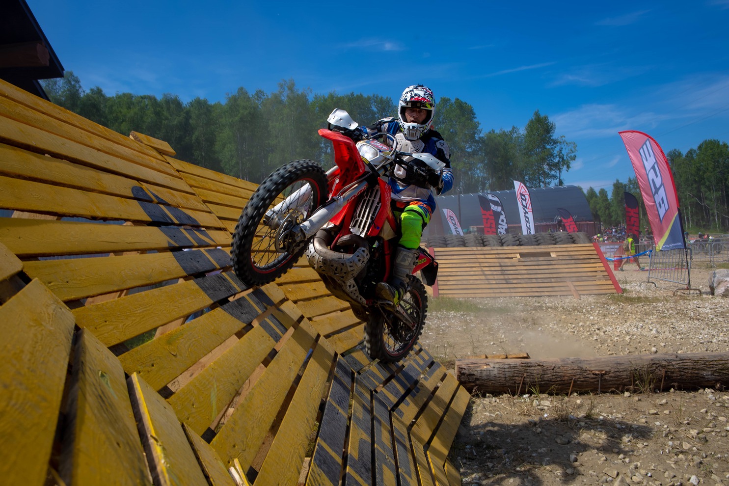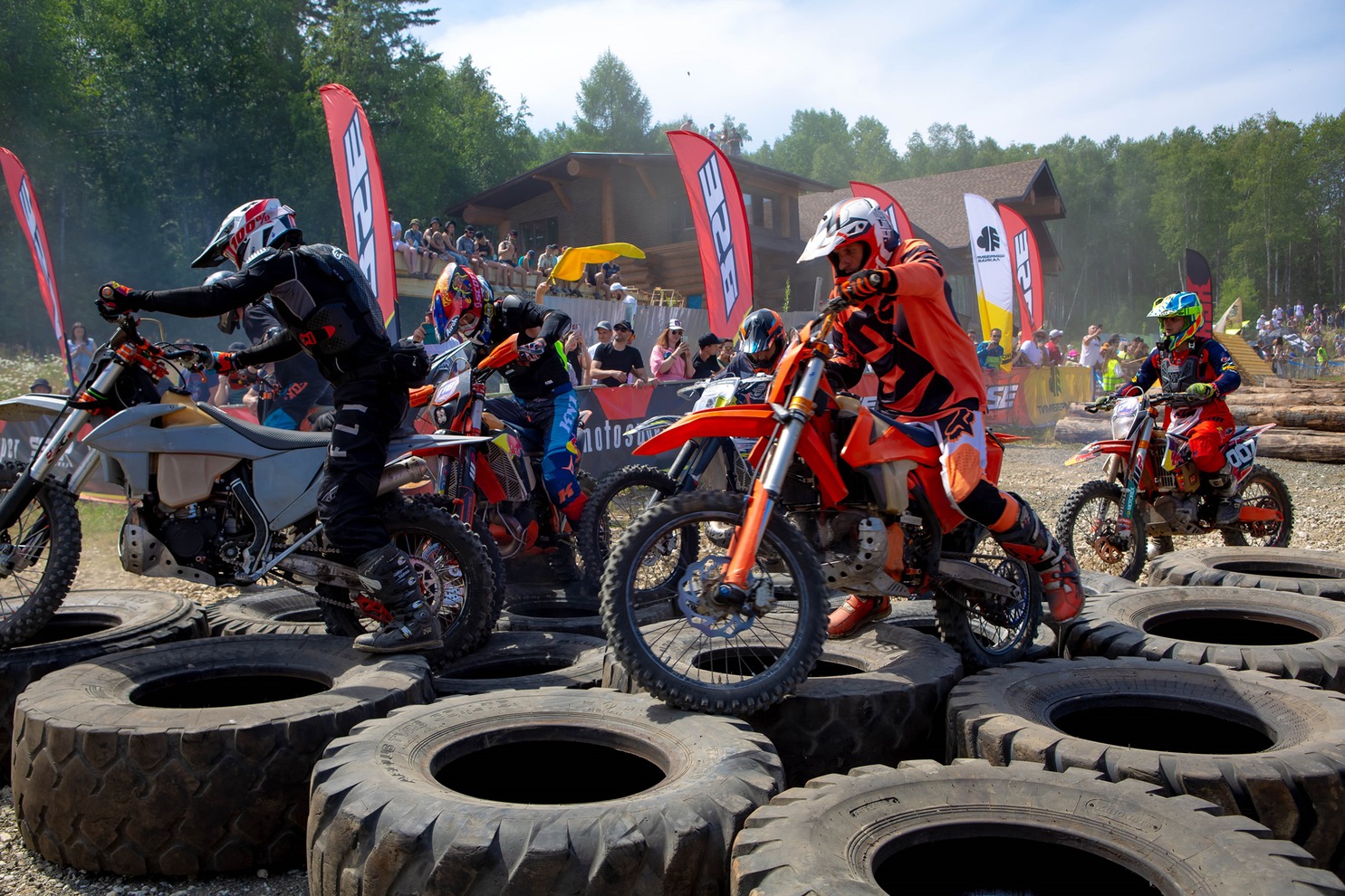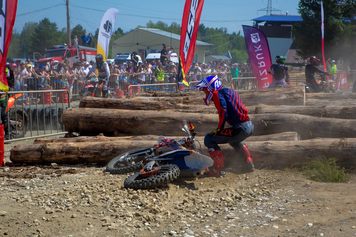 Испытания этапа чемпионата России в Байкальске разделили на два дня: в первый участники преодолевали стадионную трассу с искусственными препятствиями — брёвна, покрышки, камни, трамплины и деревянные конструкции.