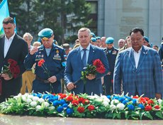 Утром у мемориала «Вечный огонь» прошёл торжественный митинг, в котором приняли участие ветераны ВДВ, участники СВО, их семьи, официальные лица, члены общественных организаций, воспитанники молодёжных патриотических организаций.