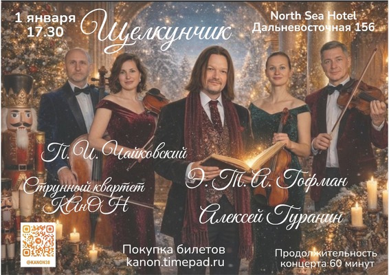 1 января 2026 года в North Sea Hotel для вас создадут портал в мир Гофмана и Чайковского. Уютная гостиная, мягкое мерцание свечей, на расстоянии вытянутой руки — музыканты струнного квартета «КАнОН», чьи инструменты оживят знакомую с детства музыку Петра Ильича Чайковского и окунут в магию звука.