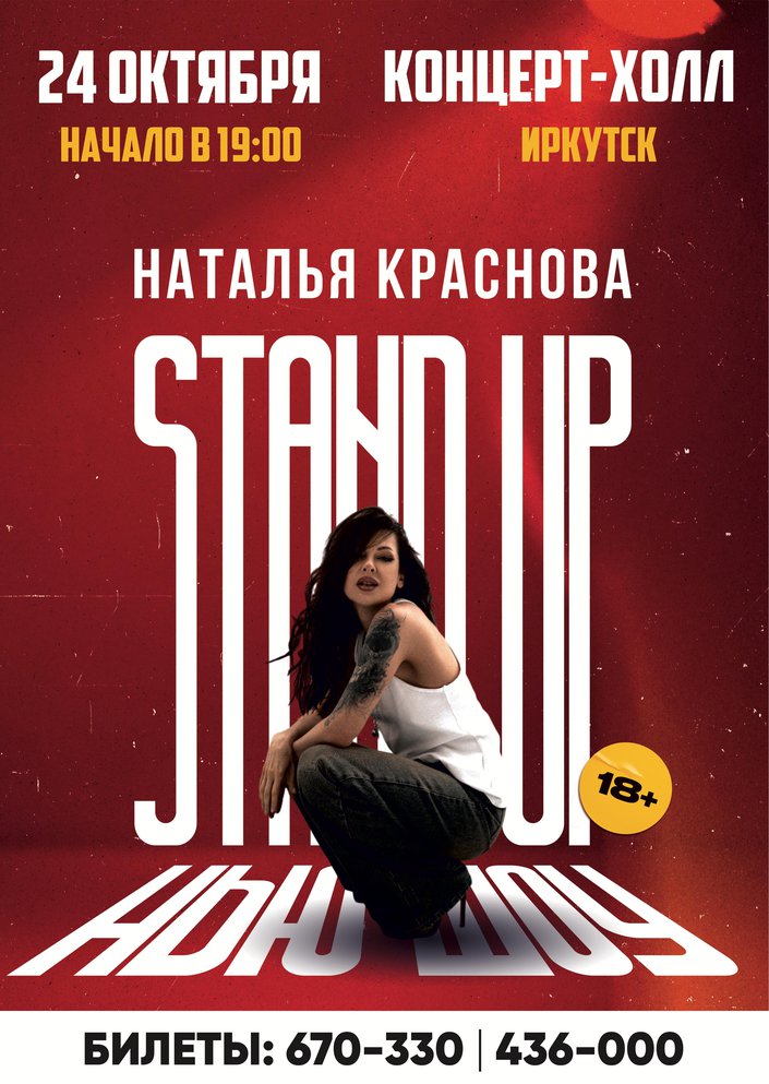 24 октября 2025 года в Иркутске со стендап-концертом «Нью-шоу» выступит Наталья Краснова.