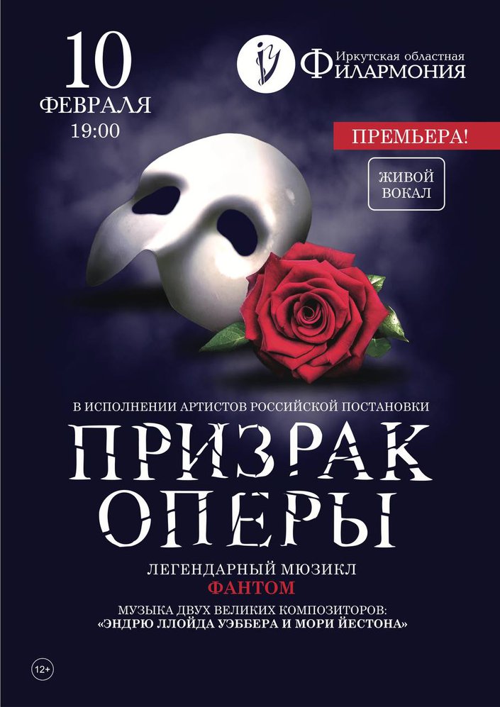 10 февраля 2026 года на сцене Иркутской областной филармонии будет исполнен мюзикл «Призрак оперы».