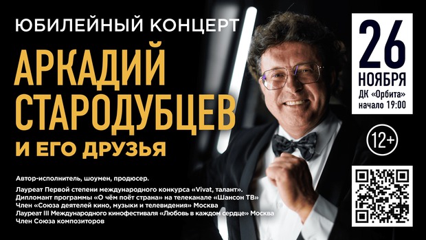 26 ноября в КДЦ «Орбита» состоится юбилейный вечер автора-исполнителя Аркадия Стародубцева.