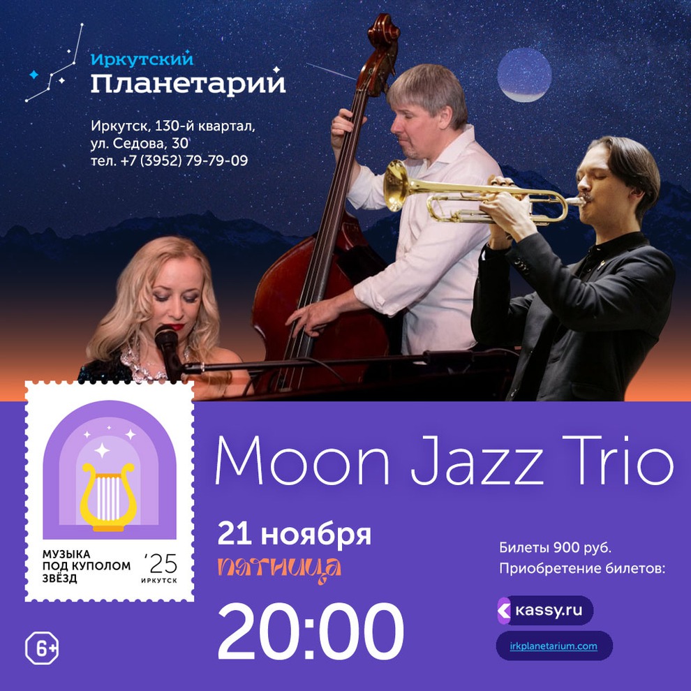 Ночь – время звёзд! В нашем Планетарии звёзды иркутского джаза – ансамбль Moon Jazz Trio*. Вас ждёт программа классических джазовых суперхитов… и кое-что ещё!