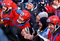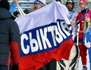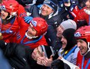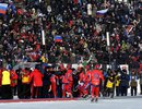 Под бурные аплодисменты болельщиков российские хоккеисты получили из рук организаторов чемпионский кубок.