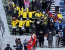 Что это было за такое??? Встали какой-то куче-толпой, больше похожей на стадо - никому с трибун ничего не видно - какая -то толкотня, кому-то что-то раздают и вешают и вручают - бардак .