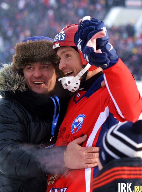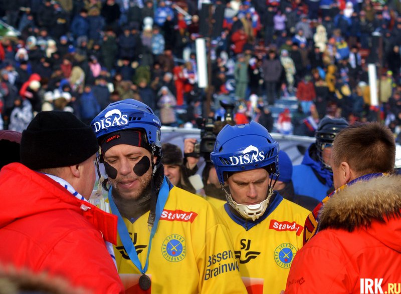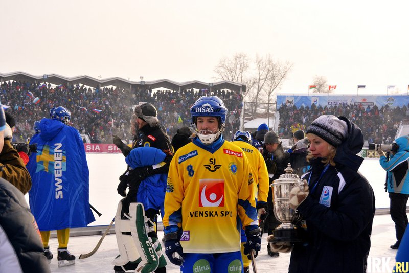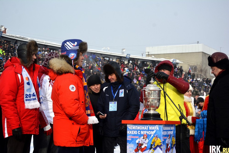Чемпионат мира по хоккею с мячом завершился в Иркутске 2 февраля. После финального матча награды командам, занявшим призовые места, вручали губернатор Сергей Ерощенко, президент федерации хоккея с мячом Борис Скрынник, мэр Иркутска Виктор Кондрашов и другие официальные лица принимающей стороны. Под бурные аплодисменты болельщиков российские хоккеисты получили из рук организаторов чемпионский кубок. Серебряные медали вручили игрокам сборной Швеции, бронзовые — сборной Казахстана.