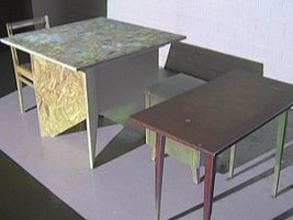 Основой видеоинсталляции «Bump It!» стали 2 стула, стол и тумба. Мебель, выкрашенная в белый цвет оживает благодаря проектору. С помощью видеоэффектов Бертран сталкивает несколько реальностей, в его проектах перемешиваются наука, технология и искусство, эмоции и обыденность, эмпирический опыт и личностное восприятие увиденного.
