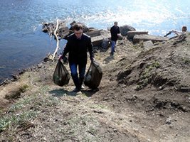 На территории ИВВАИУ мусор собирали несколько десятков человек. А правый берег реки Ушаковки убирали 100 сотрудников одного из иркутских банков. Участники субботника вывезли отсюда более 200 мешков бытовых отходов, а затем высадили деревья на «Аллее содружества» на Нижней набережной.