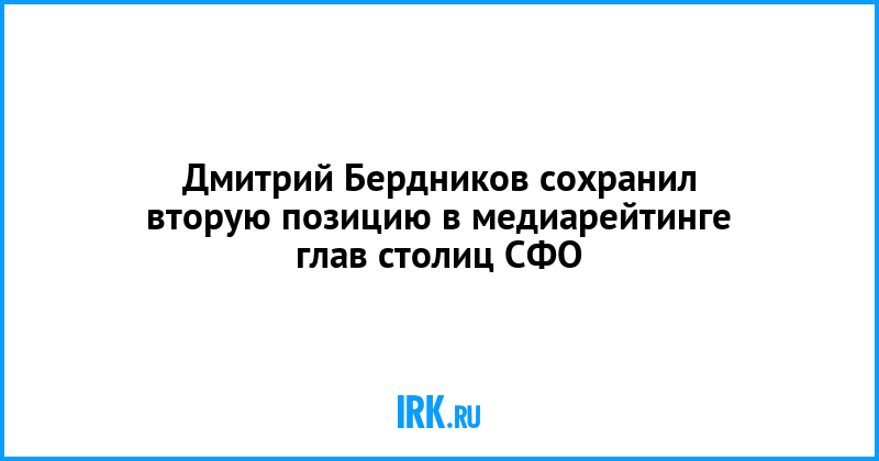 Компания «Медиалогия» подготовила медиарейтинг глав регионов столиц Сибири за июнь текущего года. Глава Иркутска Дмитрий Бердников сохранил за собой вторую строчку. Первым стал его коллега из Новосибирска Анатолий Локоть. На третьей строчке — глава Красноярска Эдхам Акбулатов.