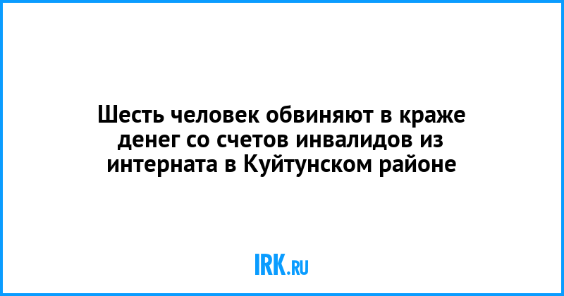 Прокуратура Иркутска утвердила заключение по уголовному делу в отношении шести человек, обвиняемых в краже денег с лицевых счетов инвалидов из психоневрологического интерната в Куйтунском районе. Им инкриминируют преступления, предусмотренные частями 3, 4 статьи 159 УК РФ «Мошенничество, совершенное группой лиц по предварительному сговору в крупном и особо крупном размерах», частью 2 статьи 159.3 УК РФ «Мошенничество с использованием платежных карт, принадлежащих другим лицам, путем обмана уполномоченного работника кредитной организации, группой лиц по предварительному сговору, с причинением значительного ущерба гражданину».