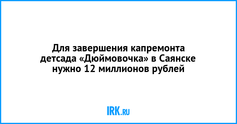 Для ввода в эксплуатацию детсада «Дюймовочка» в Саянске после капремонта в 2016 году необходимо укомплектовать его оборудованием, мебелью, инвентарем. По предварительным подсчетам, для этого необходимо 12 миллионов рублей. Из бюджета города могут выделить только половину суммы. Об этом рассказала завучреждением Виктория Журавлева во время визита губернатора региона Сергея Левченко.