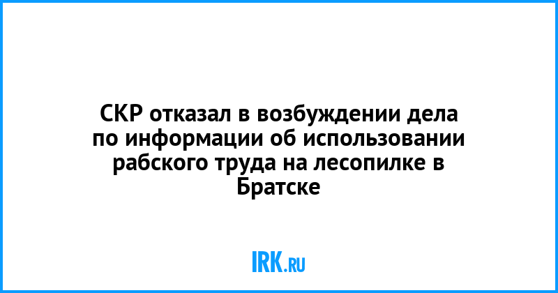 СУ СКР по Иркутской области завершило доследственную проверку по факту использования якобы рабского труда на лесопилке в Братске. Информация об этом появилась в конце июля в сюжете телеканала «360». В нем сообщалось, что жителю Серпухова вместе со стройматериалами из Братска пришла записка с просьбой о помощи. Автор письма указал, что рабочим не дают воду, у них отобрали паспорта.