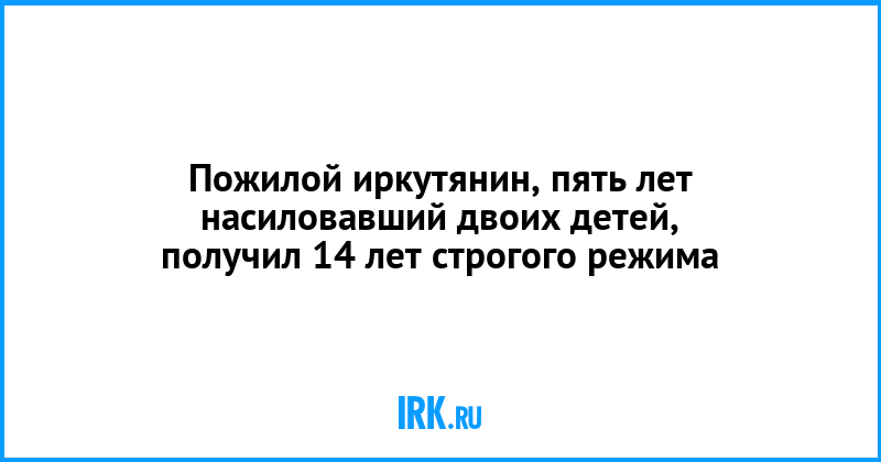 14 лет лишения свободы с отбыванием наказания в исправительной колонии строгого режима получил 68-летний иркутянин за изнасилования и развратные действия в отношении двоих детей, а также изготовление порнографических материалов. Всего он признан виновным по 30 эпизодам.