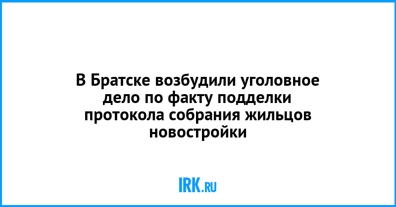 В Братске возбудили уголовное дело по факту подделки протокола общего собрания жильцов новостройки на Олимпийской, 31. В полиции выясняют, каким образом жительница дома, которая умерла за месяц до проведения собрания, назначила себя председателем и секретарём. Об этом сообщает «БСТ».