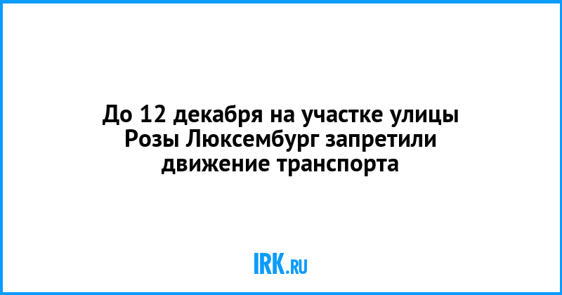 Со 2 по 12 декабря запрещено движение транспорта в районе дома 273а/2 по улице Розы Люксембург. Об этом сообщает пресс-служба администрации Иркутска.