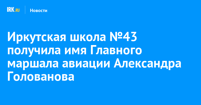 Иркутской школе №43 присвоили имя Главного маршала авиации Александра Голованова. Об этом сообщила пресс-служба администрации Иркутска.