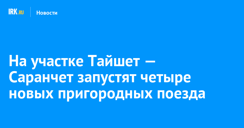 Со 2 января 2017 года на участке Тайшет — Саранчет начнут движение четыре новых пригородных поезда: № 6741 «Тайшет — Саранчет», № 6743 «Тайшет — Саранчет», № 6740 «Саранчет — Тайшет» и № 6742 «Саранчет — Тайшет». Об этом сообщила пресс-служба ВСЖД.