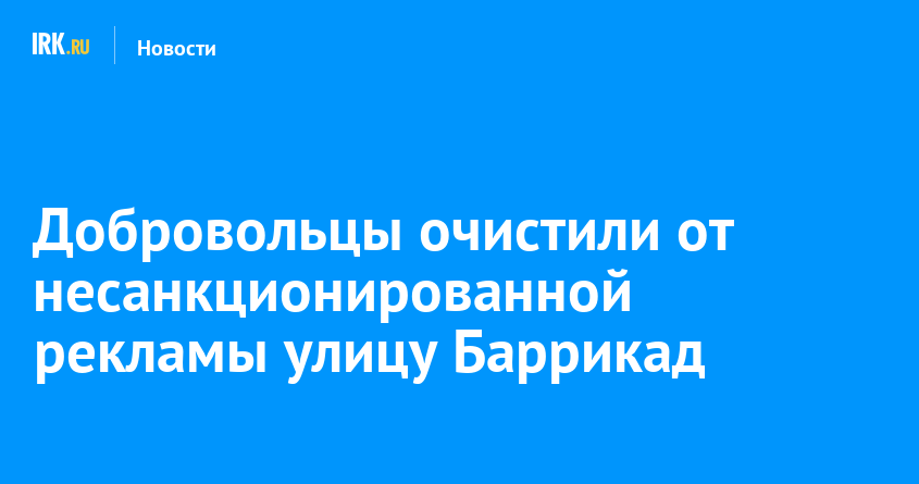 «Иркутский батальон» добровольческого экологического полка России очистил от несанкционированной рекламы улицу Баррикад. Акция прошла 28 декабря, участие в ней приняли около 20 человек. Добровольцев поприветствовал мэр Иркутска Дмитрий Бердников.