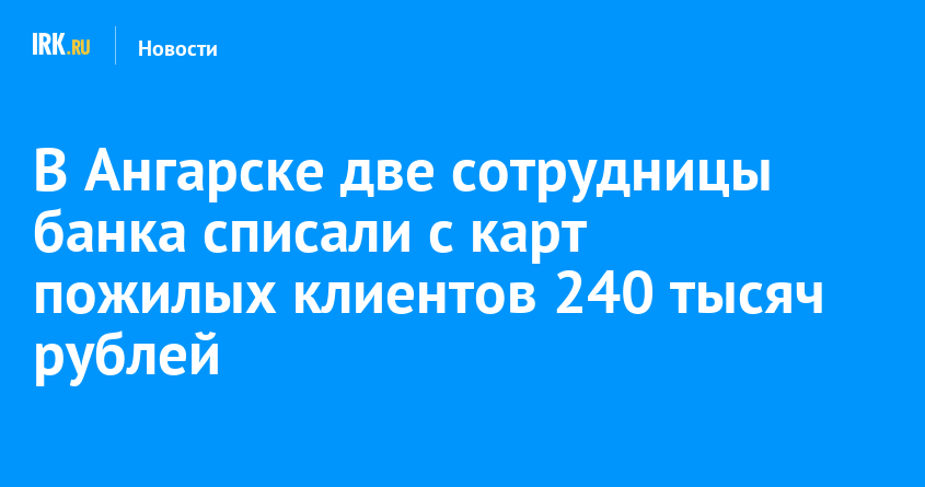Ангарский городской суд назначил 3 и 2,5 года условно двум сотрудницам банка. Осенью 2015 года подруги совешили восемь мошенничеств. С сентября по ноябрь через банкомат они подключали пожилых клиентов без их ведома к онлайн-сервису и распечатывали чеки с одноразовыми паролями.