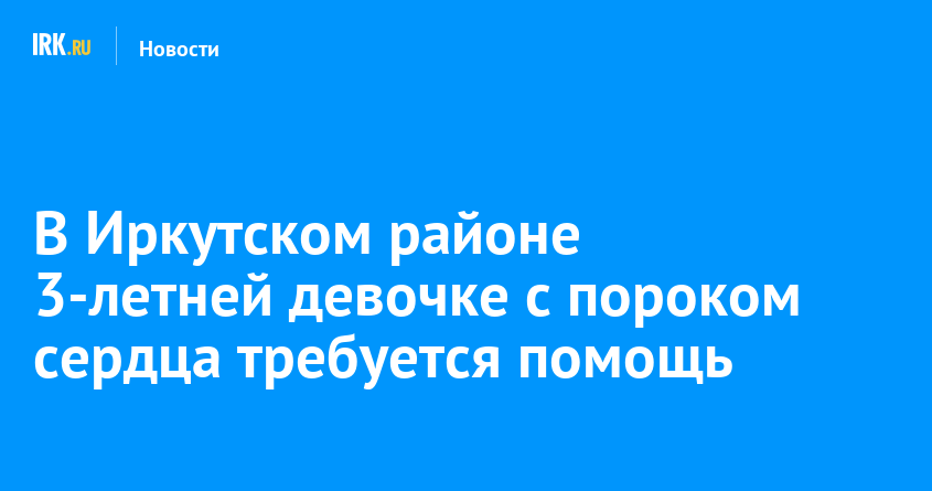 Девочке проведут операцию по госквоте. Родители ребёнка просят жителей Иркутской области помочь в покупке специального окклюдера за 242 799 рублей. Он необходим для проведения эндоваскулярной операции (без разреза грудной клетки). Семья воспитывает двоих детей и не может себе позволить покупку.