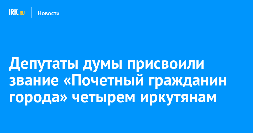 Накануне Дня города в Иркутске прошла церемония присвоения звания «Почетный гражданин города Иркутска». Решением городской думы почетным званием удостоены четыре иркутянина. За существенный вклад в развитие города и обеспечение благополучия его населения звание «Почетный гражданин города Иркутска» получил председатель Совета Иркутской областной общественной организации ветеранов (пенсионеров) войны, труда, вооруженных сил и правоохранительных органов Валерий Игнатов. Председатель Иркутского областного отделения общероссийского общественного благотворительного фонда «Российский детский фонд» Светлана Кулинич за выдающиеся заслуги в области защиты прав человека и гражданина, значительные достижения в организации и осуществлении благотворительной деятельности в Иркутске. Заместитель председателя правления региональной общественной организации "Иркутское землячество «Байкал» Валерий Хайрюзов за выдающиеся заслуги в области культуры и искусства. Директор Федерального государственного бюджетного учреждения науки Институт динамики систем и теории управления имени В.М. Матросова Сибирского отделения Российской академии наук, доктор технических наук, академик Российской академии наук, профессор Игорь Бычков за выдающиеся заслуги в области науки, техники, охраны окружающей среды и защиты прав человека и гражданина.