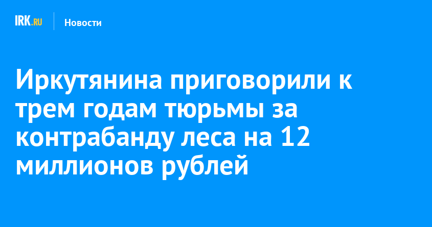 Ленинский районный суд Иркутска приговорил местного жителя к трем годам лишения свободы за контрабанду леса. Также ему назначен штраф в 400 тысяч рублей с лишением права заниматься экспортной деятельностью на три года. Об этом сообщила пресс-служба суда.