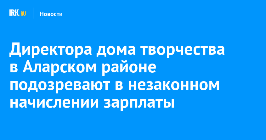 Следствие возбудило уголовное дело в отношении директора дома детского творчества в Аларском районе. Женщину подозревают в незаконном начислении зарплаты на общую сумму 400 тысяч рублей.