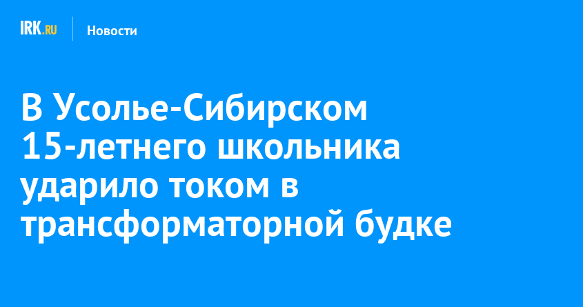 Следственное управление СК России по Иркутской области начало доследственную проверку по факту травмирования в Усолье-Сибирском 15-летнего школьника в трансформаторной будке. Установлено, что девятиклассник вечером 29 мая залез в трансформаторную будку недалеко от АЗС, где его ударило током, после чего на нем загорелась одежда.