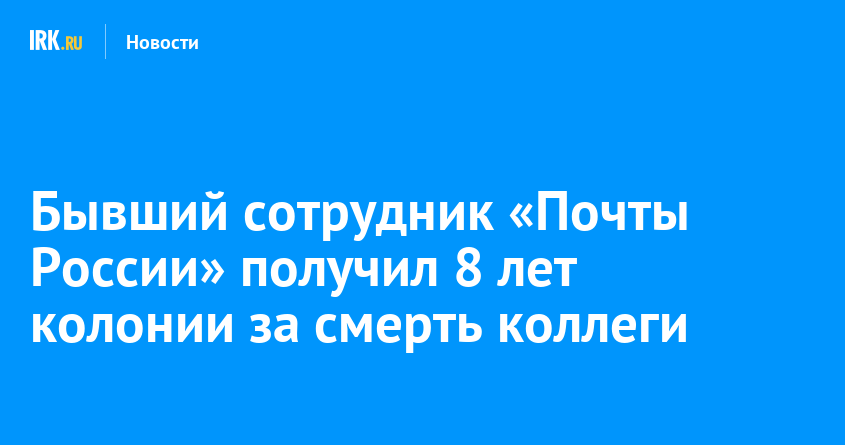 Суд приговорил бывшего сотрудника «Почты России» к 8 годам колонии строгого режима за причинение тяжкого вреда здоровью, повлекшее по неосторожности смерть человека. Суд установил, что 24 февраля на станции Иркутск-Пассажирский между мужчинами произошел конфликт. Один из них несколько раз ударил оппонента в лицо, от чего тот ударился головой о стену вагона и потерял сознание.