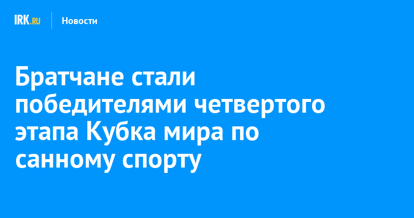 Спортсмены из Братска Михаил Карнаухов и Юрий Чирва стали победителями четвертого этапа Кубка мира по санному спорту. Соревнования проходили с 14 по 19 января в Швейцарии. Братчане показали лучшее время среди двухместных экипажей.
