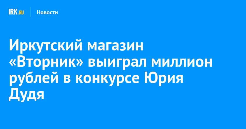 Иркутский благотворительный магазин «Вторник» стал одним из победителей конкурса, который организовал журналист Юрий Дудь. Итоги блогер озвучил 3 февраля на странице в «Инстаграме». Иркутяне получат 1 миллион рублей на развитие проекта. Церемония награждения состоится в марте.
