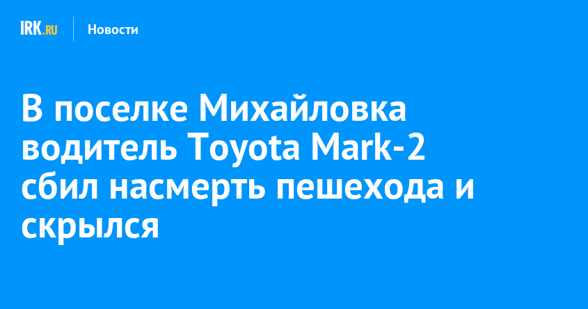 15 февраля около 23:20 в поселке Михайловка Черемховского района 22-летний водитель Toyota Mark-2 сбил пешехода, который переходил дорогу в неположенном месте. ДТП произошло на улице Горького. Виновник аварии с места происшествия скрылся.