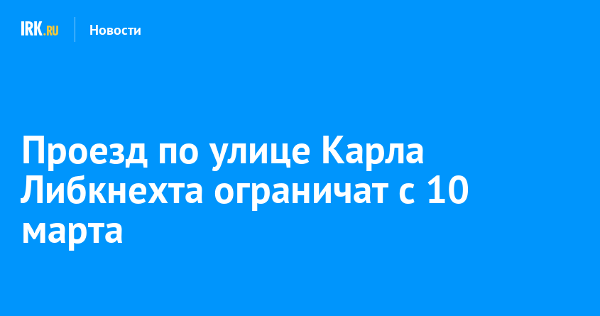 В Иркутске ограничат проезд по улице Карла Либкнехта. Временный запрет будет действовать с 10:00 10 марта до 21:00 13 марта, сообщили в пресс-службе городской администрации.