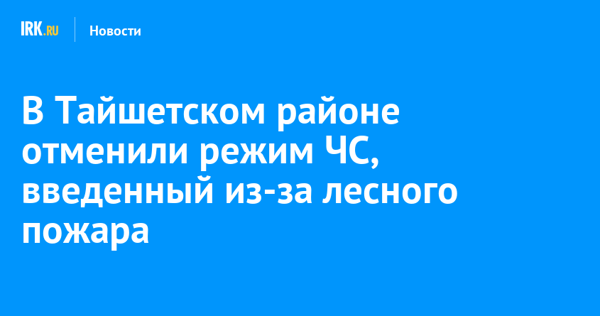 В Тайшетском районе отменен режим ЧС муниципального уровня, введенный 25 мая в связи с ухудшением лесопожарной обстановки. Решение принято после ликвидации крупного лесного пожара 2 июня.