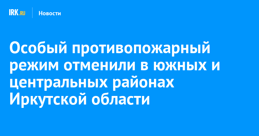 С 15 июня особый противопожарный режим отменили в южных и центральных районах Иркутской области. На севере региона он продлится еще месяц. Здесь по-прежнему строго запрещено использование любых источников открытого огня, разжигание мангалов, сжигание мусора, разведение костров, палы травы в населенных пунктах, СНТ и лесах. Также режим не снят в Кимильтейстком муниципальном образовании Зиминского района из-за повышенного уровня пожарной опасности и гибели на пожарах людей.