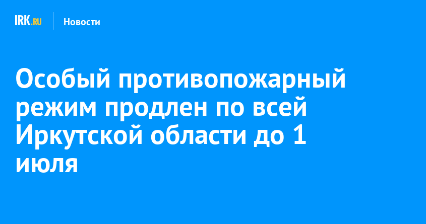 Особый противопожарный режим продлен на территории всей Иркутской области до 1 июля. Решение принято 19 июня на заседании региональной комиссии по предупреждению и ликвидации чрезвычайных ситуаций и обеспечению пожарной безопасности под руководством врио губернатора Иркутской области Игоря Кобзева.
