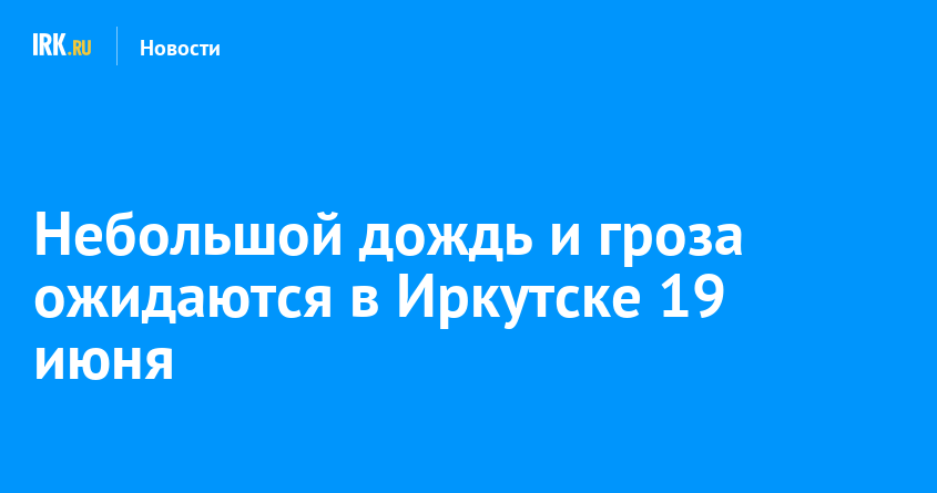 19 июня в Иркутске ожидаются небольшой дождь и гроза. По данным Иркутского УГМС, температура воздуха днем составит +22,+24 градусов, ветер до 10 метров в секунду.