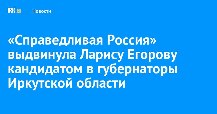 «Справедливая Россия» определила председателя совета отделения партии, вице-спикера регионального Заксобрания Ларису Егорову кандидатом в губернаторы Иркутской области, сообщили в пресс-службе «СР». 20 июня прошла конференция регионального отделения политической партии в Иркутской области. Ранее ее кандидатуру согласовали в Москве.